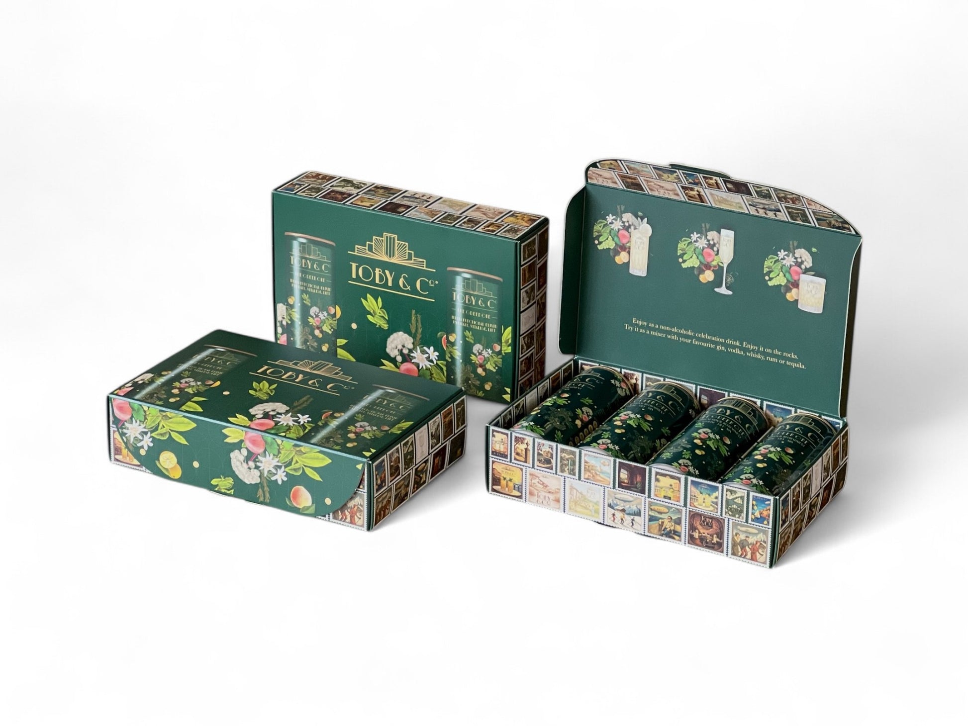 Toby&Co was created to fill a need for a healthy, environmentally friendly, and delicious soft drink and mixer, free from artificial additives. Inspired by global travels and traditional herbs, Toby&Co combines English, Alpine and Mediterranean botanicals, green tea extract, nootropic mushrooms, and Celtic salt to create a refreshing, versatile drink that enhances cognitive function and mood. The brand aims to bring a classic, adventurous, and fun element to everyday life with a focus on health and well-being and a touch of elegance.